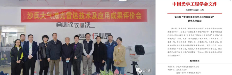 中国光学工程学会将沙氏雷达技术及其应用评为了【技术发明奖】。成果评价会中国电子科技集团的【周寿恒院士】和中国环科院的【柴发合副院长】以及包括中国环境监测总站在内的多家科研单位专家,对此技术在环保行业的应用给与了很高的评价,给与了【国际先进】的评价。