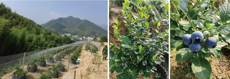 2023年武义县大田乡徐村贫瘠山地采用控根器基质栽培蓝莓,实现一年结果、二年达产、三年丰产