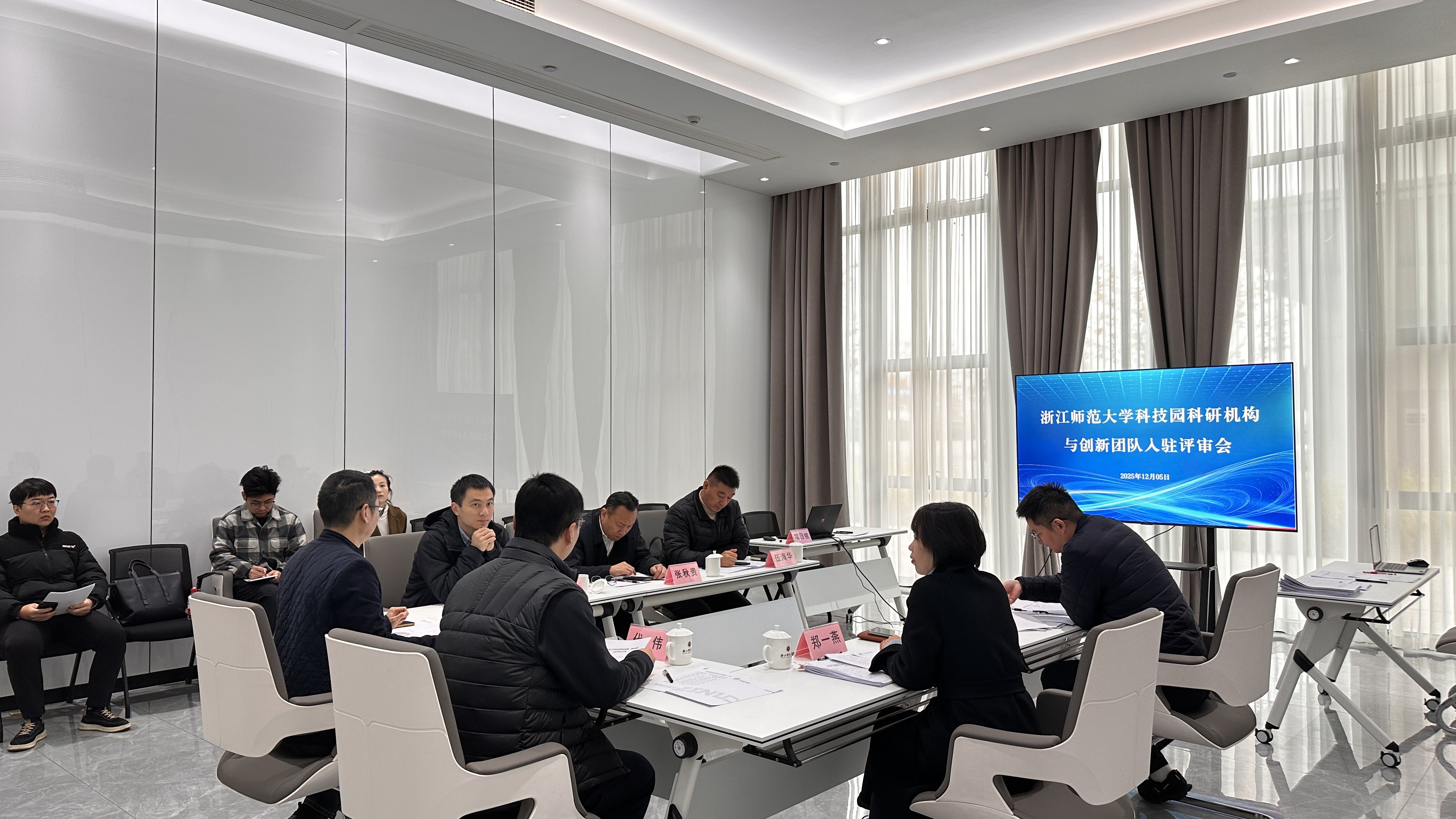 12月5日上午,浙江师范大学科技园科研机构、创新团队入驻评审会在园区内顺利举行。本次评审会由浙师大技术转移与成果转化研究院(下称:双转院)组织,旨在遴选优质科研机构与创新团队,集聚校内外创新资源,为区域产业升级与高质量发展注入新动能。